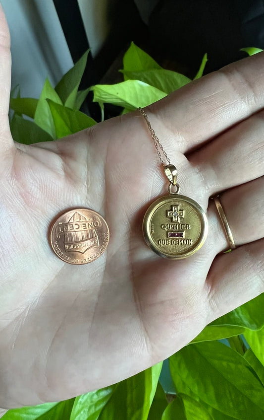 Antique 18k gold Augis pendant with 14k gold 18” chain
