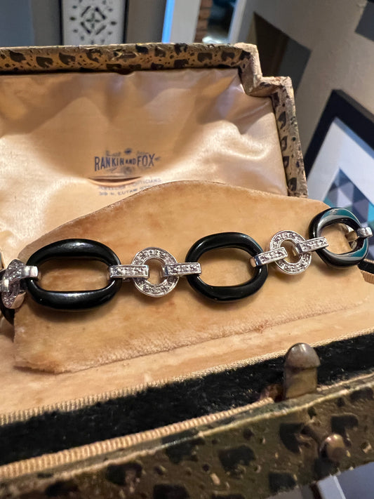 Art deco style diamond and onyx bracelet
